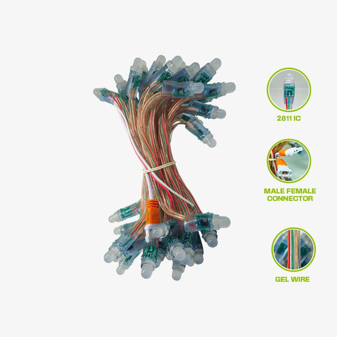 Upgrade your lighting setup with premium Gel Wire Pixel LED Strings, engineered for creators, decorators, and professionals who need bright, customizable, and durable addressable LEDs. Each strand features 50 RGB pixel modules spaced evenly across a 20-foot gel-insulated wire, offering excellent flexibility and weather resistance.